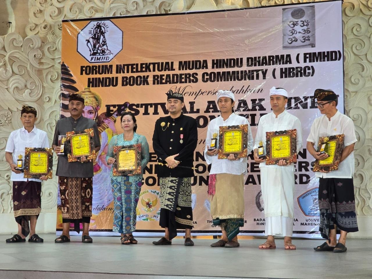 GIANYAR — Dosen Universitas PGRI Mahadewa Indonesia (UPMI) Bali, Dr. Anak Agung Gde Alit Geria, M.Si. kembali menorehkan prestasi di bidang literasi dan kebudayaan Hindu. Ia menerima Hindu Book Reader Community Award (HBRC) 2025 sebagai Penulis Buku Budaya Hindu Terbaik 2025 atas karya berjudul Singha Langghyala Parwa, sebuah kajian mendalam berbasis lontar kuno yang sarat ajaran leluhur.