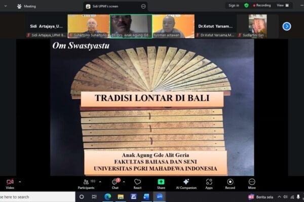 UPAYA pelestarian warisan budaya Bali kembali digaungkan melalui Seminar Kolaboratif Revitalisasi Pengetahuan Tradisional Berbasis Lontar di Ruang Paseban, UPMI Bali, Sabtu (18/10). “Melestarikan lontar berarti melestarikan jati diri dan kebijaksanaan budaya Bali,” ujar Rektor UPMI Bali, Prof. Dr. Drs. I Made Suarta, S.H., M. Hum., dalam sambutan sekaligus membuka acara. Kegiatan ini merupakan kolaborasi antara…